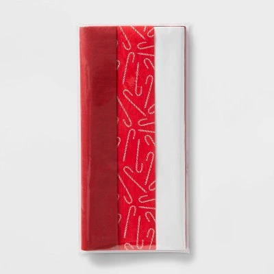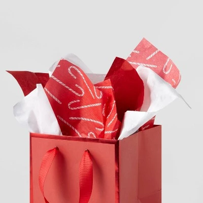 Stuff your gift bags this holiday season with this 150-Count Banded Gift Tissue Paper from Wondershopâ˘. This pack of banded tissue paper includes 150 sheets in solid red and white colors as well as a white candy cane pattern on a red backdrop for plenty of fun and festive choices. Perfect for holiday gifting or any other occasion, you can place them as fillers inside gift boxes, packages, baskets or gift bags to give a special finish.