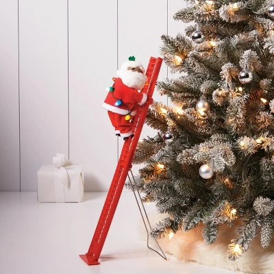 - Features Santa climbing up and down the ladder with light string for added holiday cheer