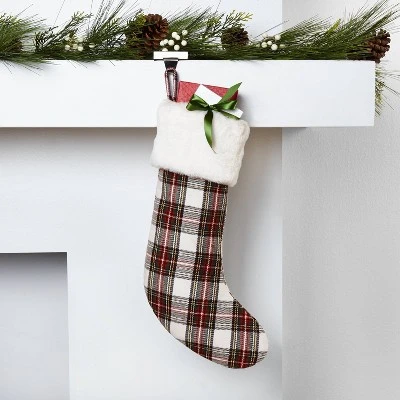 Keep your gift-giving display for the holidays classically chic when you hang up the Plaid Christmas Stocking from Wondershop™. This 20-inch Christmas stocking features a soft fabric in a green, red and white plaid print for a classic, cozy look that’ll blend in beautifully with the rest of your seasonal decor. It comes with an attached loop that makes it a breeze to hang from your mantel, staircase or wall. Whether you fill it with candy, socks, gift cards, lip balm or any other small trinkets, this plaid stocking rounds out your holiday decor in merry style.