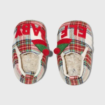 Your tiny elf will love the cute comfort and feel of these Elf Plaid Bootie Slippers from Wondershop™. These toddler bootie slippers feature a breathable upper with cushioned insole for all-day comfort. The plaid pattern exterior with ”Elf” written at the front, along with a pom-pom Santa hat, will make the fuzzy booties an instant hit with your child. These closed-toe booties also sport a no-heel design with elastic gore and back pull tab for ease of wear.